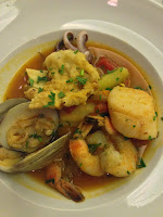 We had Bradley the Abalone Cultivator , Neil the Oyster Officer, Eric the Wine Wrangler, a teacher, a bakery and yours truly,  scary food reviewer at our long elegant table.  We had a lively table with iridescent conversation that was food centric but enlivened with funny antidotes. We started with the Bodegas M- 2011 Albarino-Querida wine, and the wine maker explained how God and soil made this an outstanding selection.