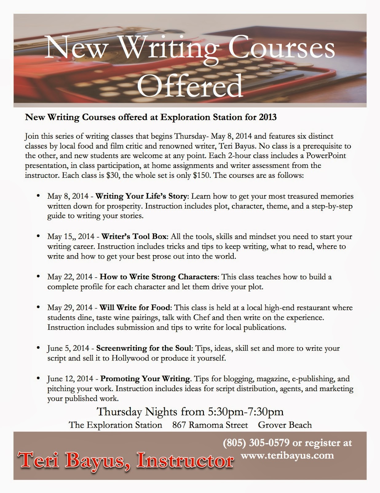 Writing Courses for May 2014 Post author:Teri Bayus Post published:March 24, 2014 Post category:Uncategorized / Writing and Creating Sign up Today! Click Here: www.teribayus.com Tags: Writing and Creating Read more articles Previous Post8 Ways to Fix the Dreaded First Draft Next PostFive Common Problems with New Writers You Might Also Like Writers Love Lust for Joss Whedon March 8, 2009 No Water Heater! I’m scheduled for Implosion! March 15, 2009 Somerset at Vespera on Ocean November 9, 2019